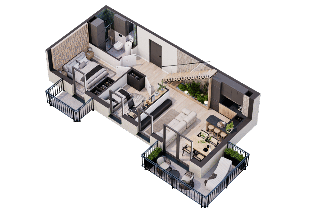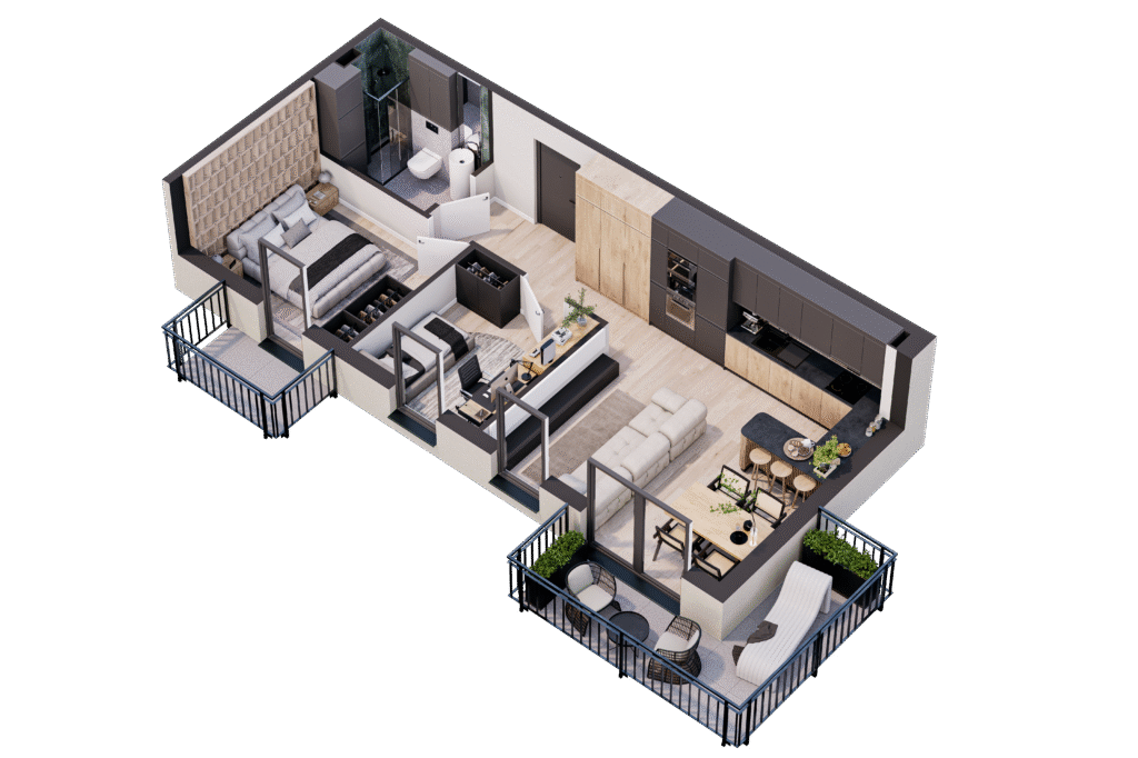 Mieszkania w inwestycji Harmonia Dębskiego zostały zaprojektowane tak, aby odpowiadały na różnorodne potrzeby – od kompaktowych lokali dla singli, po przestronne dwupoziomowe penthausy dla rodzin. Funkcjonalne układy i duże przeszklenia sprawiają, że wnętrza są jasne, dobrze doświetlone i łatwe w aranżacji. Lokale parterowe oferują prywatne ogródki, które idealnie sprawdzą się jako miejsce relaksu lub zabawy dla dzieci, a wyższe kondygnacje posiadają balkony i tarasy z widokiem na zieleń. Na terenie osiedla dostępne są miejsca postojowe na sprzedaż. To praktyczne rozwiązanie dla osób ceniących wygodę parkowania.